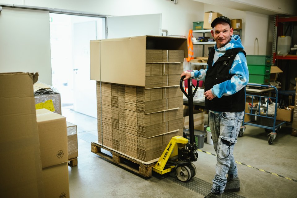 Vor einem halben Jahrhundert begann eine absolute Erfolgsgeschichte im Bereich der Teilhabe von Menschen mit Behinderungen am Arbeitsleben. Am 02. Mai öffneten die Werkstätten im Caritasverbund Olpe ihre Tore für die ersten 13 Beschäftigen im ehemaligen Jugendheim Listerscheid. Heute erfahren 655 Beschäftigte in den Werthmann-Werkstätten tagtäglich Teilhabe am Arbeitsleben. Einer von ihnen ist Denis Kühr, der nun seit 23 Jahren mit an Bord ist. Der 40-Jährige beendete 1999 die Schule und wechselte von dort in die Werkstätten. „Ich litt unter zahlreichen epileptischen Anfällen und wurde hier in der Werkstatt stark unterstützt. Ich habe 11 Jahre in der Montage in Olpe gearbeitet, bevor ich eine OP hatte, die mich von den Anfällen erlöste.“ Leider kam es während der OP zu Komplikationen, die es notwendig machten, dass er in eine Einrichtung für „betreutes Wohnen“ in Lennestadt umziehen musste. Trotzdem konnte er weiterhin seiner Tätigkeit bei den Werthmann-Werkstätten nachgehen. 2009 wurde der Standort in Welschen Ennest eröffnet Hier fand er einen erfüllenden Platz im Lager. Bis heute sortiert er den Warenein- und ausgang, ist in der Materialausgabe tätig und sitzt zweimal in der Woche an der Zentrale. „Das gefällt mir sehr gut. Ich bin viel im Haus unterwegs, es ist abwechslungsreich und ich treffe viele Kolleginnen und Kollegen.“ Dabei verbreitet er gute Laune auf all seinen Wegen, denn Denis Kühr strahlt eine positive Lebenseinstellung aus, der man kaum widerstehen kann. „Es läuft generell hervorragend. Ich bin stolz, dass ich seit ein paar Wochen ganz allein eine eigene Wohnung in Attendorn bewohne und demnächst möchte ich ein Praktikum bei einer Firma machen.“ Dies läuft bei den Werkstätten mit Unterstützung des Bereichs „eXtern“. Beschäftigte, die sich fit genug für den ersten Arbeitsmarkt fühlen, werden in Kontakt mit Unternehmen gebracht, so dass dort ein Praktikum gemacht werden kann. Hieraus kann sich ein regulärer Arbeitsvertrag ergeben.