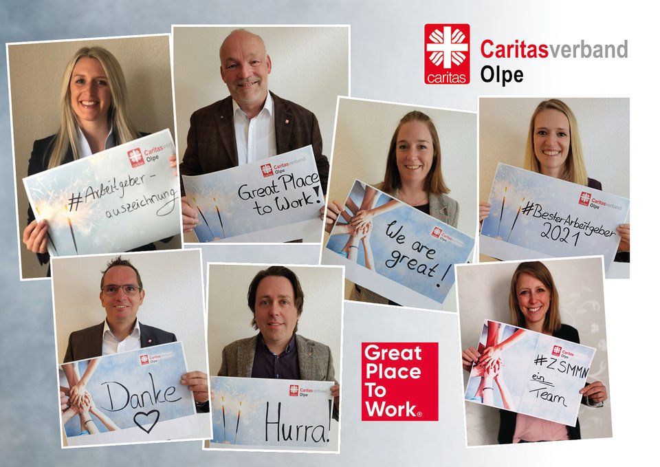 Kreis Olpe. Der Caritasverband Olpe versteht seine Vision „Caritas. Nah. Am Nächsten.“ Auch in Pandemie-Zeiten – auch mit Abstand betrachtet. Das Gütesiegel „Bester Arbeitgeber“ des bundesweiten Great Place to Work®“-Wettbewerbs in der Kategorie Trägergesellschaft mit mehr als 50 Mitarbeitenden steht für eine glaubwürdige, respektvolle und faire Zusammenarbeit der Führungskräfte mit den Mitarbeitenden, für eine hohe Identifikation aller mit ihrer Tätigkeit und für einen starken Teamgeist. Die Vision und sein Leitbild „Gemeinsam Zukunft gestalten“ versteht der Sozialverband als besondere Verpflichtung nicht nur gegenüber den betreuten und unterstützten Menschen in der Region, sondern auch und insbesondere gegenüber den Kolleginnen und Kollegen, die den Dienst am Nächsten leisten.