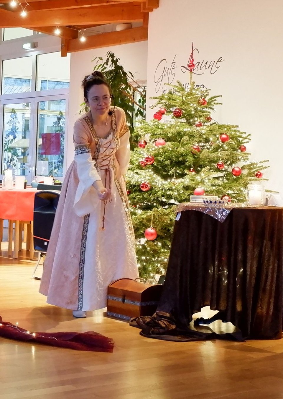 Finnentrop. „Es war einmal“ – Mit diesen drei Worten beginnt jedes Märchen und auch Erzählerin Tanja Schreiber nutze diese magische Formulierung für den Märchennachmittag im Haus Habbecker Heide. Märchen wecken Erinnerungen. Gepaart mit einem entsprechenden Kostüm und viel Einfühlungsvermögen bescherte die ausgebildete Erzählerin den Bewohnerinnen und Bewohnern einen besonderen Nachmittag.