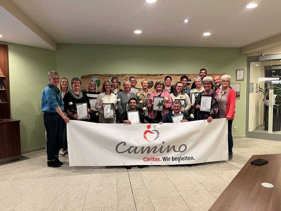 Auch in diesem Jahr fand der Abschluss des Qualifizierungskurses für ehrenamtlich Mitarbeitende des Hospiz- und Palliativpflegedienstes Camino statt. Es war ein intensiver, bereichernder Kurs, der den Absolventinnen und Absolventen nicht nur fundiertes Wissen vermittelte, sondern auch persönliche Einblicke in die Begleitung schwerstkranker Menschen sowie deren Familien und Bezugspersonen gab. 16 engagierte Teilnehmende haben sich dieser verantwortungsvollen Aufgabe gestellt und den Kurs erfolgreich abgeschlossen.