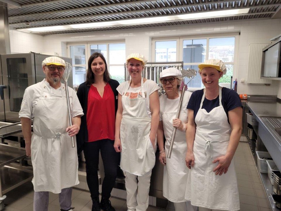 Jennifer S., die dort im Hauswirtschaftsteam von Christiane Stauer arbeitet weiß, dass ein umfangreiches Wissen zu Themen wie ausgewogene Ernährung, Materialien, Techniken oder aber auch wirtschaftlichem Handeln und Organisation notwendig ist, damit alles „rund“ läuft. Auch wachse der Stellenwert der Digitalisierung in der Hauswirtschaft. „Gänzlich ersetzt werden können wir Mitarbeitende aber nicht“, schmunzelt die Fachkraft, die betont, wie wichtig strukturiertes Arbeiten beispielsweise in einer Großküche sei. „Vieles läuft von rechts nach links, es gibt einen inneren und äußeren Greifraum, alles hat seinen Platz und seine Ordnung.“ Speisen lagern, Vorräte anlegen, Kalkulationen erstellen – aber ja, kochen und reinigen gehöre auch dazu. „Den Teiglöffel ablecken? Ein absolutes No-Go!“