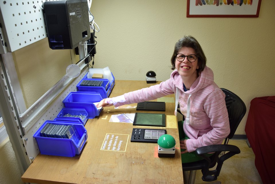In unterschiedlichen Bereichen sind die Caritas-Werkstätten bemüht, die Digitalisierung im Alltag bereits umzusetzen. In der „unterstützenden Kommunikation“ für Menschen mit schwersten Behinderungen und der Beruflichen Bildung werden digitale Hilfsmittel bereits umgesetzt. Zur Digitalisierung im Arbeitsbereich haben die Werthmann-Werkstätten Unterstützung bei durch die Lernfabrik der Ruhr-Universität Bochum erhalten. Ein Student der Fachrichtung „Produktionssysteme und Maschinenbau“ begleitete den Prozess vor Ort im Rahmen seiner Bachelorarbeit. Ziel war, ein digitales Assistenzsystem für einen Arbeitsplatz zu entwickeln. In diesem Pilotprojekt der Abteilung Lennestadt wurde der digitaler Arbeitsplatz eingerichtet. Eine Power-Point-Präsentation projiziert alle Arbeitsschritte auf den Arbeitstisch. In Textform bzw. per Lichtsignal wird genau beschrieben, wo Einzelteile entnommen werden müssen und wie diese zu bearbeiten sind.