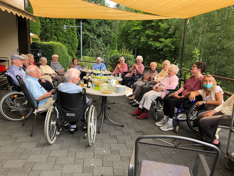 Musikalisch gebührend eröffnet durch das Hofkonzert des Spielmannszugs Wenden 1908 stand das Augustwochenende wie sonst üblich ganz im Zeichen der Kärmetze. Für die Bewohnenden Anlass genug, in geselligen Runden amüsante Kirmesgeschichten auszutauschen. Auch kulinarisch wurden alle Register gezogen. Die Mitarbeitenden des Sozialen Dienstes sorgten für frisch gebackene Reibekuchen, Zuckerwatte und Popcorn, um auch den Geschmack des „Wendschen Hochfestes“ in aller Munde zu bringen. „Es ist schön zu sehen, wie unsere Bewohnenden die Stimmung genießen und in Erinnerungen schwelgen.“, sagt Anne Böhler, Leiterin des Sozialen Dienstes, „das Engagement der vielen Haupt- und Ehrenamtlichen freut unsere Bewohnenden ganz besonders.“