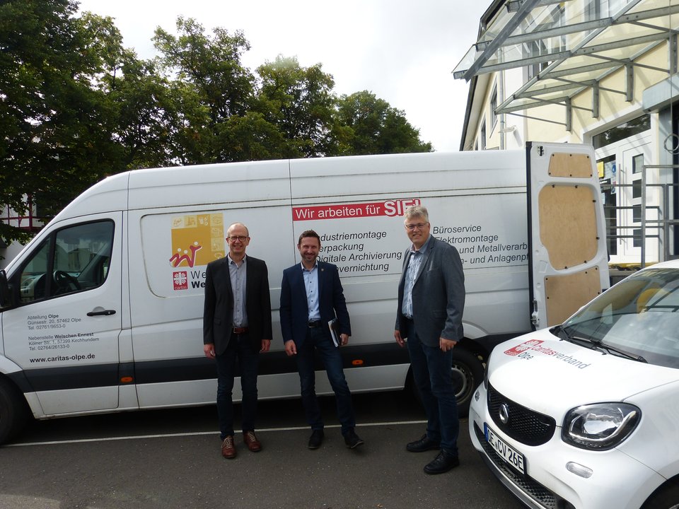 Foto: von links: Andreas Mönig, Leitung Werkstätten; Bürgermeister Björn Jarosz aus Kirchhundem, Achim Scheckel, Abteilungsleiter