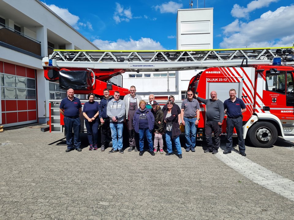 „So nah dran sein, mal in einem Feuerwehrauto sitzen und lernen, worauf es im Ernstfall ankommt – das ist schon toll. Hier geht ein Kindheitstraum in Erfüllung“, brachte es Annette Schulze beim Besuch der Feuerwache in Attendorn auf den Punkt. Insgesamt 13 Beschäftigte der Abteilung eXtern der Werthmann-Werkstätten nutzten gemeinsam mit ihren Jobcoaches Anne Deimel und Kerstin Cremer die Gelegenheit, sich unter fachkundiger Anleitung über wichtige Brandschutzthemen zu informieren und wertvolle, praxisnahe Alltagstipps mitzunehmen.
