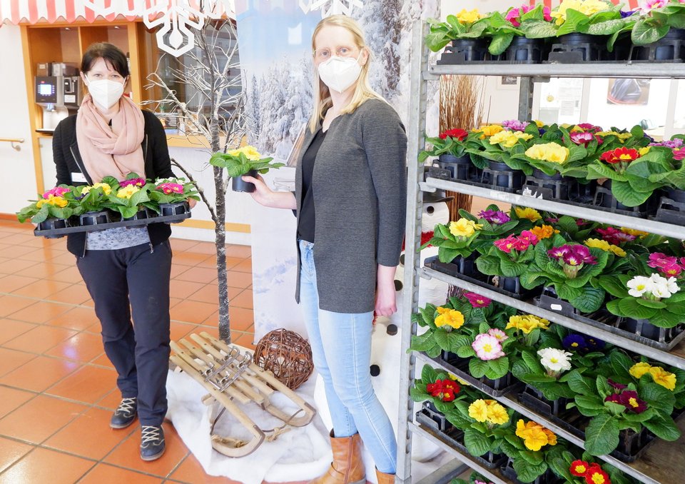 Mit bunten Primeln bedankte sich der Förderverein des Seniorenhaus Finnentrop e. V. bei allen Mitarbeitenden des Caritas-Zentrums Finnentrop. Im Namen des Vorstands richtete Thomas Feldmann den Dank für ihren Einsatz in der Corona-Krise an alle hauptberuflich und ehrenamtlich Mitarbeitenden des Haus Habbecker Heide, der Caritas-Tagespflege und der Caritas-Station.