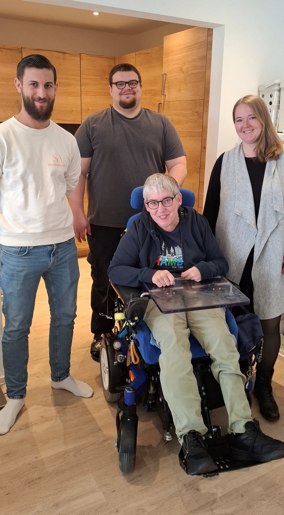 Als Julia Berg auf das Modell der persönlichen Assistenz aufmerksam wurde, das laut Bundesteilhabegesetz Menschen mit Behinderung per Rechtsanspruch zusteht, war für Silke Kammerer sofort klar: „Das ist mein Weg.“ Ein Satz, der alles ins Rollen brachte. Die Wohnhausleitung wurde zu einer wichtigen Wegbegleiterin und setzte sich mit großem Engagement dafür ein, gemeinsam mit Silke ihren Wunsch nach mehr Selbstständigkeit zu realisieren. „Als Caritas ist unser Auftrag, Wege zu finden, damit jeder Mensch so leben kann, wie er möchte“, betont Julia Berg. Es folgten Hilfeplangespräche, Antragstellungen, Abstimmungen mit dem Landschaftsverband Westfalen-Lippe (LWL) als Kostenträger sowie die Auswahl eines geeigneten Assistenz-Dienstes.