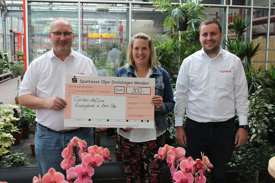 „Über diese Finanzspritze werden sich unsere Kita-Teams freuen“, war sich Alexandra Scheld von Caritas-AufWind sicher. Die Hagebaumärkte in Attendorn, Finnentrop und Lennestadt konnten jetzt 900 Euro zugunsten der sieben Caritas-AufWind-Kindergärten im Kreis Olpe übergeben. Das gesammelte Geld aus der Frühlingsaktion wird für vielfältige Anschaffungen genutzt, um die Betreuung und Förderung der Kinder weiterhin bestmöglich gestalten zu können.