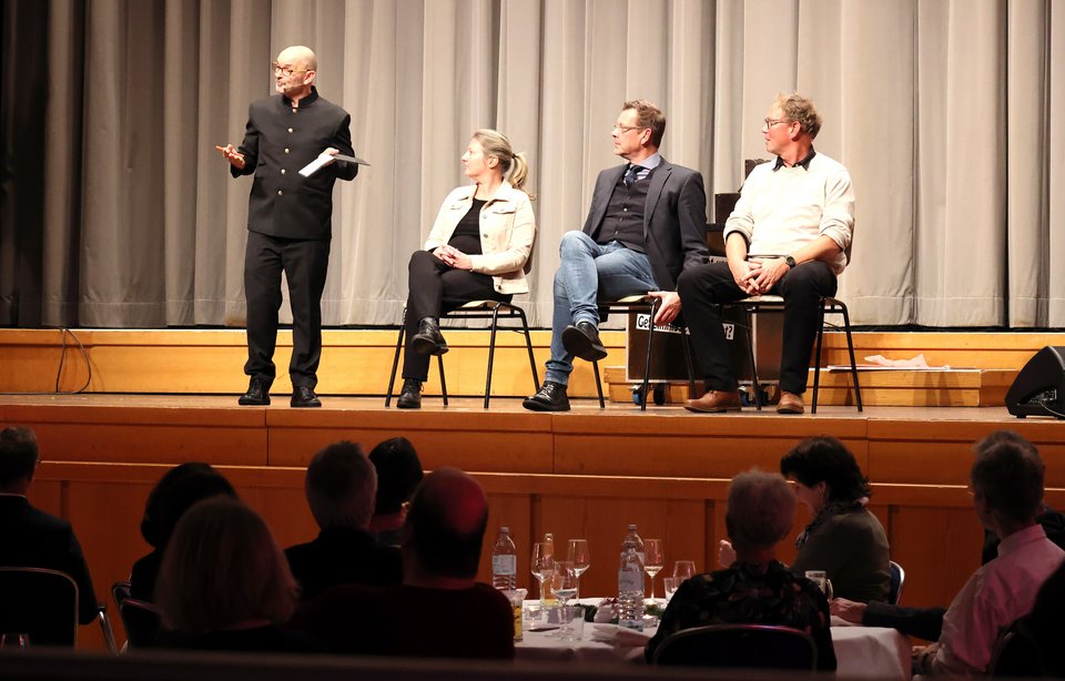 „Hauptakteur“ des dritten Videos war der Marktwagen im St. Franziskus Seniorenhauses in Elspe, der regelmäßig durch die Wohnbereiche tourt. Der „Verkaufsstand der etwas anderen Art“ bietet den Bewohnenden und Kurzzeitpflege-Gästen die Möglichkeit, Hygieneartikel, kleine Geschenkartikel, Zeitschriften, Süßigkeiten oder Saisonwaren für den täglichen Bedarf vor Ort einzukaufen. Drei zauberhafte Projekte, die dank der Caritas-Stiftung den Weg in die Realisierung gefunden haben, hob im Anschluss auch Magier und Mentalist Robert Marteau hervor, der mit viel Zauberei für beeindruckendes Staunen und Verwunderung beim Publikum sorgte. Zu positiven Perspektiven und einer eben solchen Grundhaltung lud Comedian Dave Davis mit Auszügen aus seinem Soloprogramm „Life is life“ ein. Das Leben sei ein herausforderndesWerkstück, „das jeder mit Humor als treibende Kraft in ein einmaliges Meisterstück verwandeln kann“. Diese und weitere Erkenntnisse zum Glücklichsein erreichten mit witzigen, charmanten und ehrlichen Geschichten aus dem Leben die Gäste des Stiftungs-Geburtstages. Ein weihnachtliches Menü rundete den gelungenen Abend voller Leckerbissen und wertvoller Begegnungen ab.
