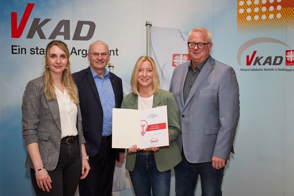 Bamberg/Kreis Olpe. Der Verband katholischer Altenhilfe in Deutschland (VKAD) hat im Rahmen seiner Bundestagung drei praxiserprobte Projekte mit dem Innovationspreis für die Langzeitpflege ausgezeichnet. Das Projekt „Integrierte Pflegebegleitung“ der Caritasverbände Paderborn und Olpe landete auf dem Siegertreppchen ganz oben. Das ausgezeichnete Projekt zeigt neue Wege für eine zukunftsweisende ambulante Versorgung und Pflege. Pflegebedürftige und deren An- und Zugehörige werden in Krisensituationen begleitet und durch gezielte Beratung gestärkt.