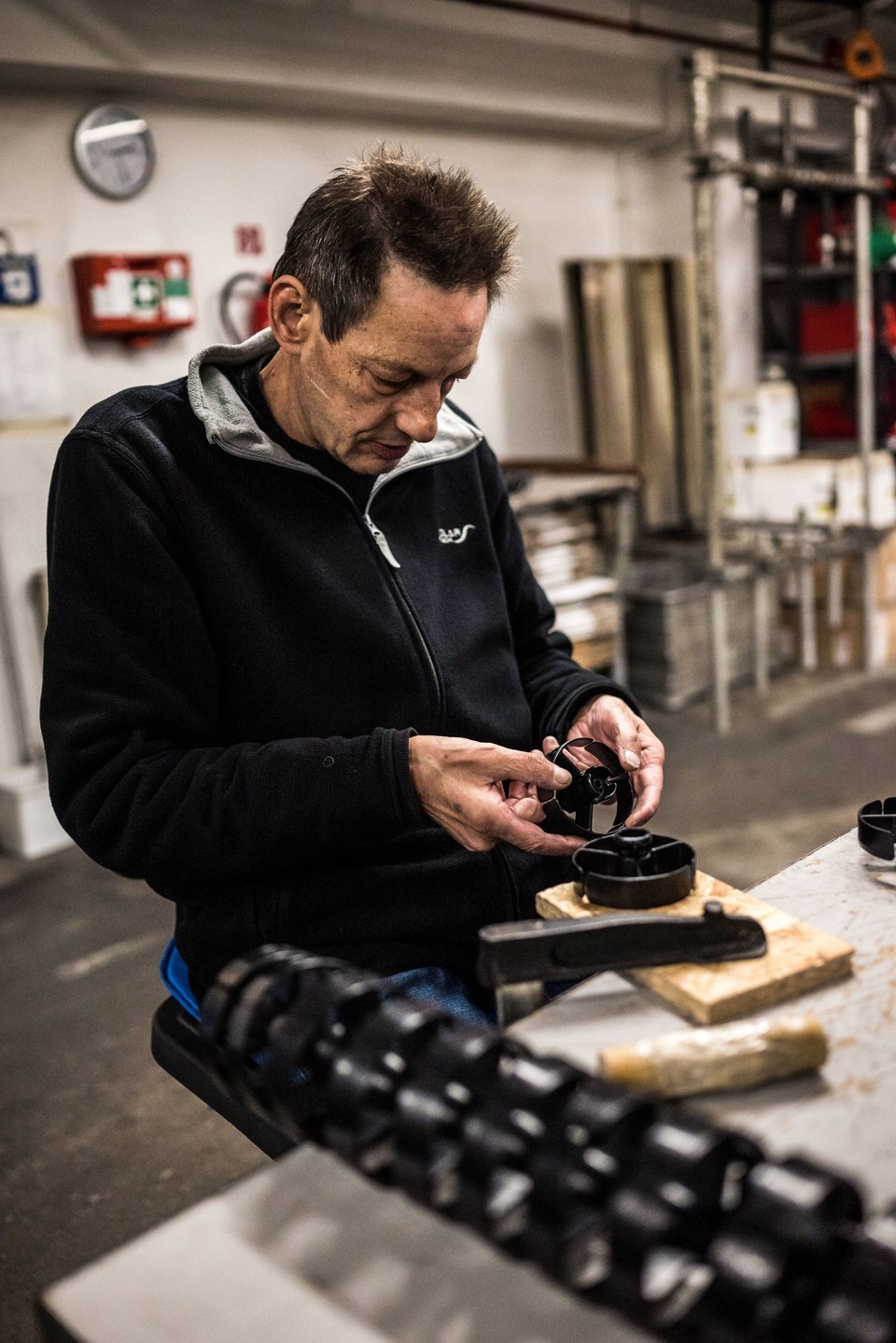 Ralf Günter Knillmann aus Olpe hat schon über 20 Jahre Erfahrung in den Werkstätten. Derzeit überprüft und bearbeitet er Kunststoffteile zur Weiterverarbeitung.