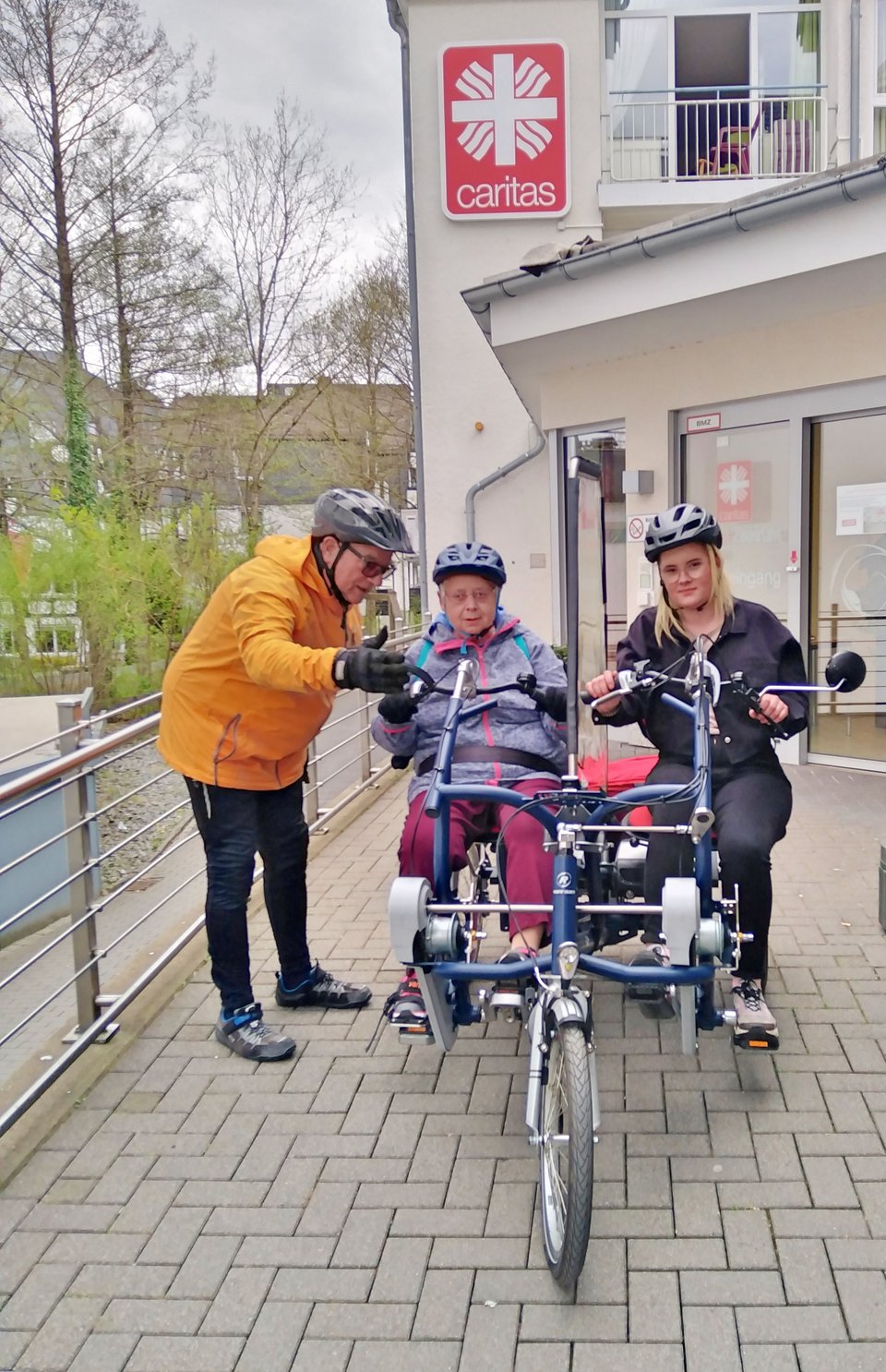 Der Frühling ist erwacht und die Bewohnerinnen und Bewohner im Caritas-Zentrum Olpe möchten gerne wieder mit dem Tandemrad auf Tour gehen. Viele Spaziergänger rund um das Olper Stadtzentrum und den Bigge-Randweg kennen schon den Anblick des fröhlichen Gespanns auf dem Tandem E-Bike, das von bewunderten Blicken begleitet durch die Frühlingssonne radelt. Diese Ausflüge sind immer ein Highlight. Eine Bewohnerin des Hauses brachte es kürzlich treffend auf den Punkt: „Wie ein Urlaubstag im schönen Sauerland.“