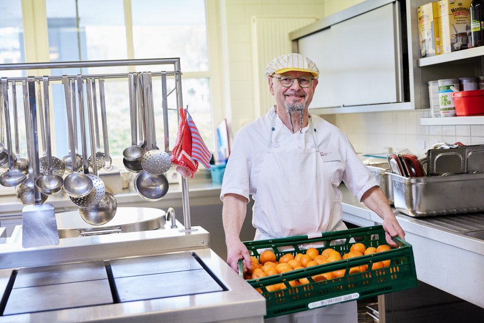 „Wir legen großen Wert darauf, dass sich die uns anvertrauten Personen in einer sauberen und gesunden Umgebung wohlfühlen. Unser ausgewogenes und abwechslungsreiches Angebot an frischen, saisonalen und regionalen Speisen soll lecker und gesundheitsfördernd sein“, betont Christiane Stauer, hauswirtschaftliche Leitung in den Caritas-Zentren Wenden und Olpe. Dass die Profession der Hauswirtschaft gerade in den Einsatzbereichen, wo viele Menschen leben und zusammenkommen, „unverzichtbar“ ist und die „Tätigkeiten unserer Teams ein breites Spektrum bedienen“, steht für Christiane Stauer und ihre Kolleginnen und Kollegen außer Frage. Klaus Schmelzer, hauswirtschaftlicher Leiter des Caritas-Zentrums in Finnentrop, hebt hervor, dass sich die Ausbildung erheblich weiterentwickelt hat, um den gesellschaftlichen und wirtschaftlichen Anforderungen gerecht zu werden. Schließlich müsse der Beruf zeitgemäßer gestaltet werden, um Mitarbeitende zu gewinnen. „Ja, auch uns plagen Nachwuchssorgen!“, bringt es Klaus Schmelzer auf den Punkt. „Interessierte, insbesondere junge Menschen und Quereinsteiger, sind herzlich eingeladen, sich bei uns zu melden und mal in den Beruf hineinzuschnuppern.“