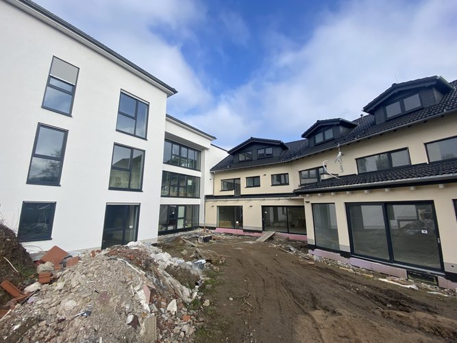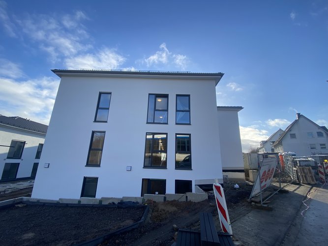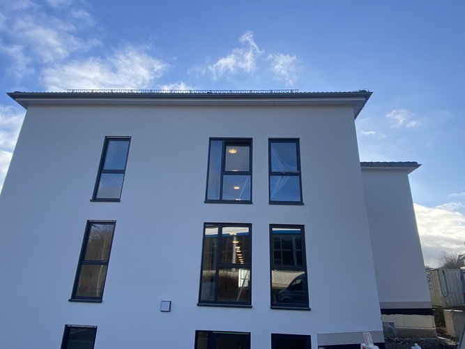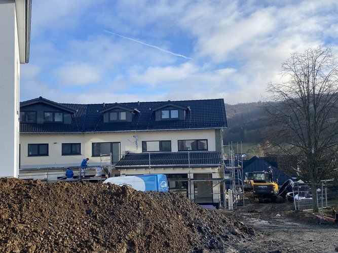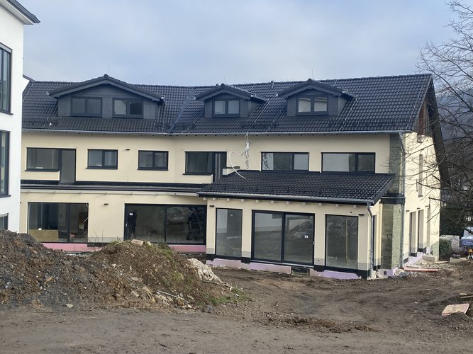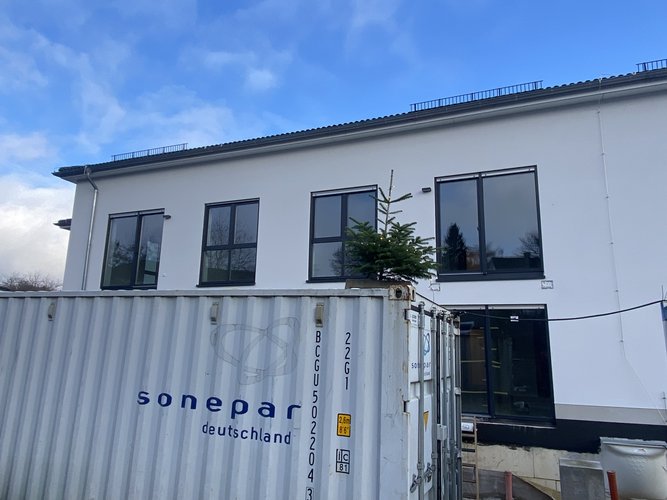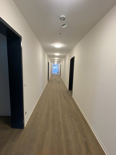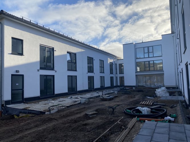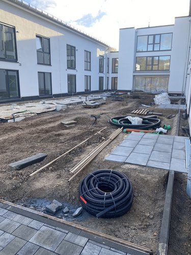 Mittlerweile sind ein Großteil der Sanitärinstallationen angebracht und erste Elektroinstallationen rücken den Neubau ins rechte Licht. Zudem stellen die ersten Trocknungsgeräte sicher, dass die ersten Bewohnenden ihre neue Bleibe zum 01. März beziehen können.
