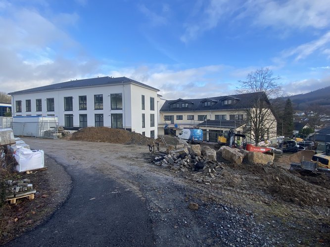 Auch auf der Baustelle des Caritas-Senioren-Wohnparks in Welschen Ennest weihnachtet es. Trotzdem arbeiten auch in der Adventszeit alle beteiligten Gewerke weiterhin auf Hochtouren, damit unser Senioren-Wohnpark im kommenden Frühjahr endlich mit Leben gefüllt wird und die zukünftigen Bewohnenden dann ihre Zimmer und Appartements beziehen können.