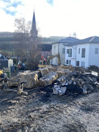 Bei strahlendem Sonnenschein und bestem Bau-Wetter wurden heute die Baggerarbeiten wieder aufgenommen.