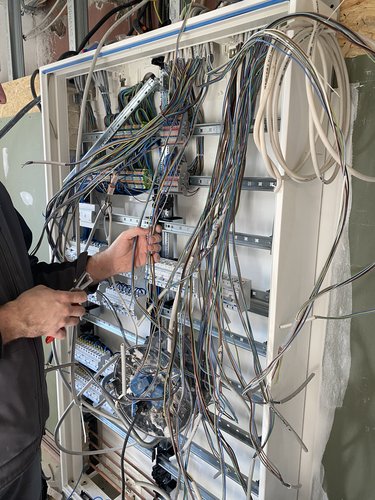 Derzeit werden Elektroinstallationen im Inneren gemacht.
